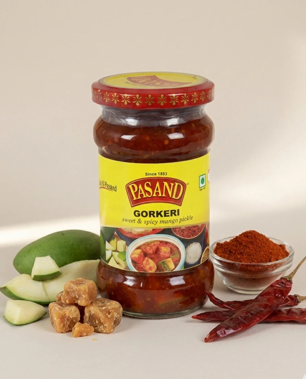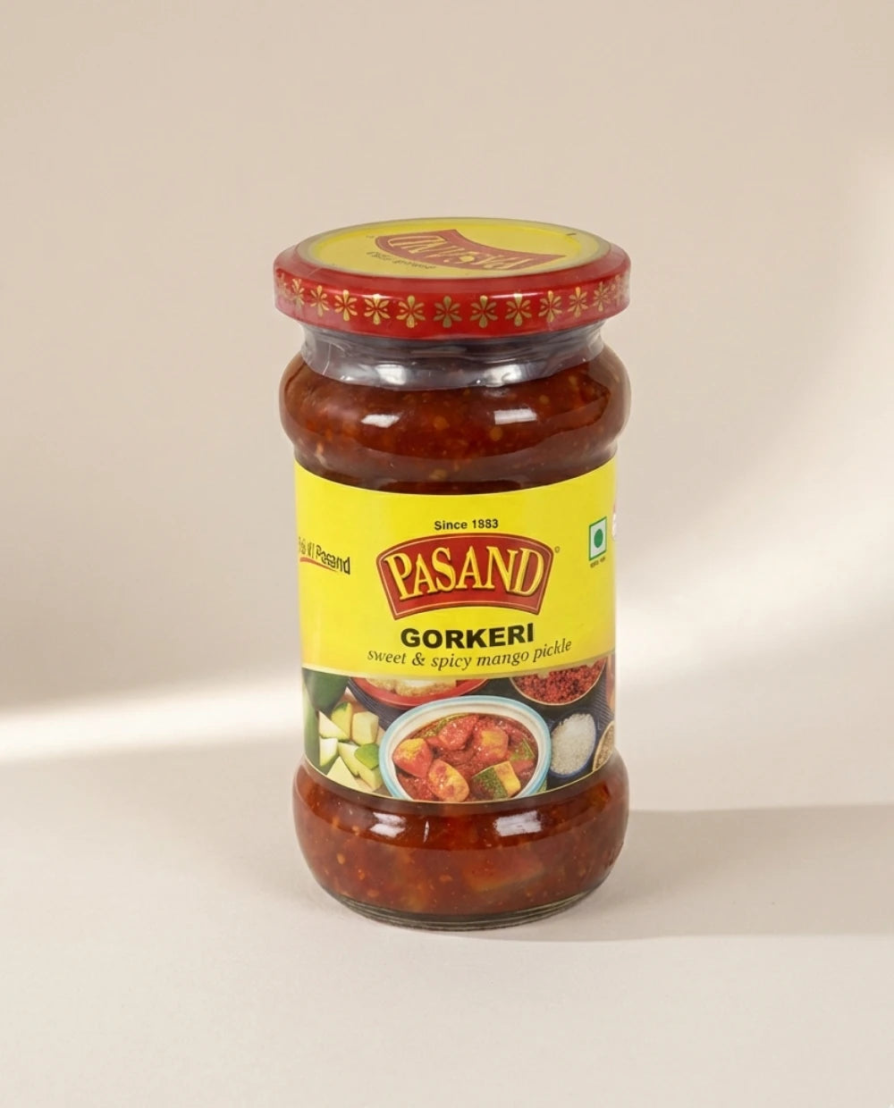 Ordinarily a sweet & spicy mango pickle. But if you were to close your eyes for a moment and reminisce back to the ancestral house kitchen porch which during summers turned into an inviting food research lab, you would be surprised to find the same flavors in Pasand Gorkeri. Using good quality jaggery as quintessential characteristic ingredient is the foundation of the traditional Pasand gorkeri. With a quality that can’t be reproduced by even top artisanal chefs or professional homemakers, this authentic formulation is a tribute to the Gujarati culture. For the ordinary its a sweet & spicy mango pickle with the spices that infuse an aroma that commercially sold spices don’t render. The crunchy mango piece shall gleefully get crushed under the grinding teeth before the mind even registers its taste inside.